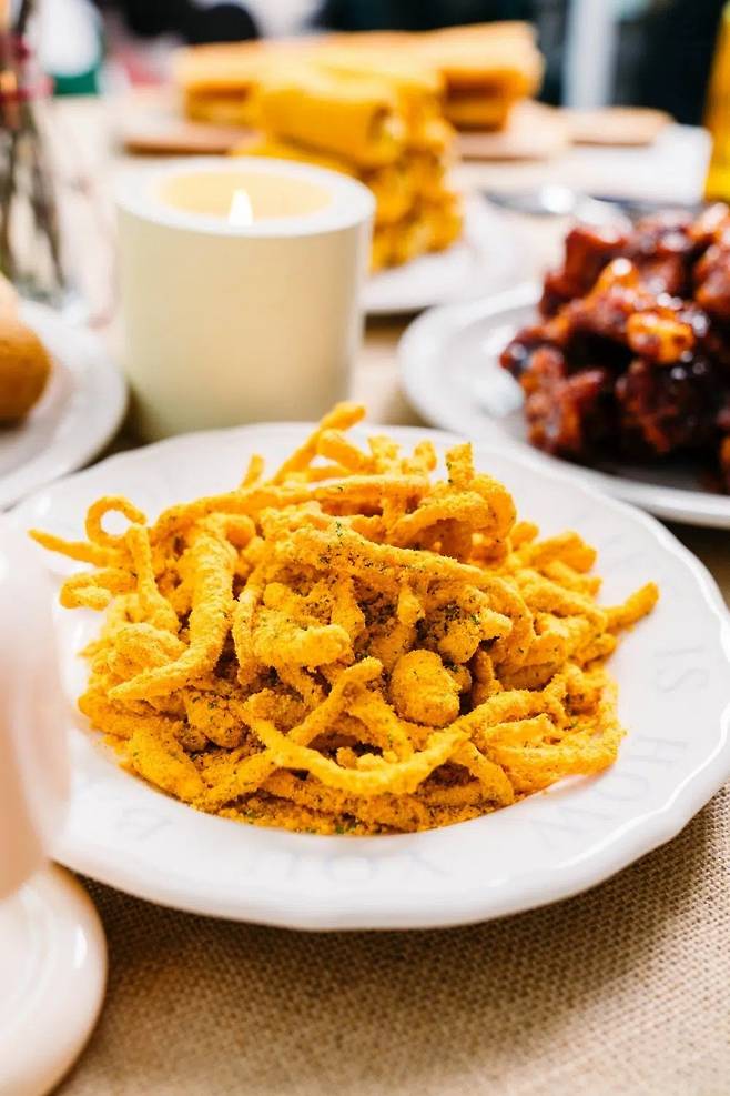 특히 추천하고 싶은 건 뿌링클 시즈닝을 활용한 사이드인데, 우선 뿌링진미채튀김과 뿌링핫도그를 강력 추천한다. 뿌링진미채튀김을 먹으며 나는 <올드보이>의 오대수를 떠올렸다. 반평생 군만두만 먹다가 세상 밖으로 나온 그가 만약 뿌링진미채튀김을 먹게 된다면 복수를 며칠 미루게 될지도 모르겠다는 생각이 들었다. 뿌링클 시즈닝을 마음에 솔솔 뿌린 듯, 세상 근심을 다 잊게 만드는 마력이 있다. 다이어트 중이지만 리뷰를 써야 하니까 몇 개만 먹어보자는 생각으로 집어 먹었는데, 어느새 그릇에 가득 담긴 진미채튀김을 모두 먹었다. 뿌링진미채튀김은 절대 한 번만 먹을 수는 없는 사이드다.