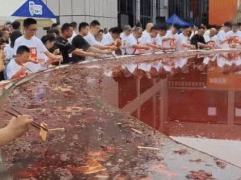온라인을 달구는 중국의 대형 훠궈 행사. 최근엔 지름 13.8m, 무려 10톤 무게의 초대형 냄비에 훠궈를 끓여 수백 명이 함께 먹는 장면이 공개돼 눈길을 끌었다.