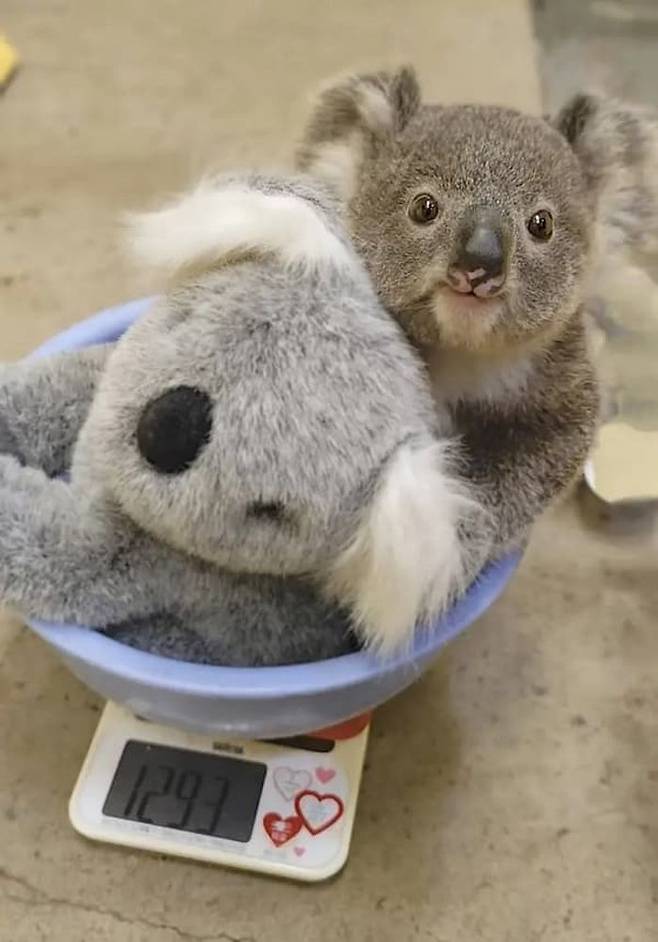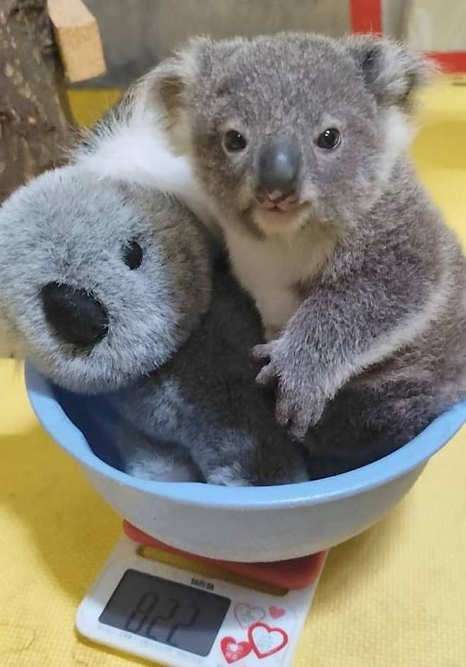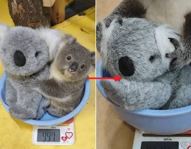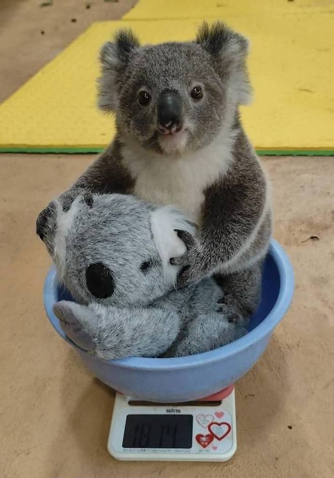 사연은 이렇습니다. SNS상에는 코알라가 어렸을 때와 현재에도 한결 같이 인형을 품에 안고 몸무게 측정을 하고 있는 사진이 올라온 것.