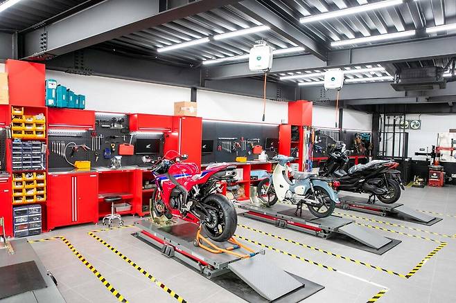 서비스센터는 6대의 워크베이를 도입해 하루 평균 40여 대의 모터사이클 정비 등 각종 서비스 대응이 가능하도록 최신 시설로 설계되었으며, 간단한 경정비 및 액세서리 장착이 가능한 퀵서비스 존을 마련해 고객 편의를 높였다.