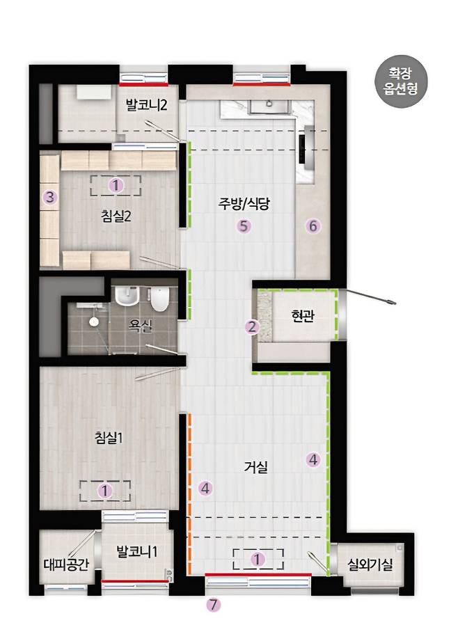 위 이미지처럼 붉은색 윈도우 부분이 시공부위입니다.