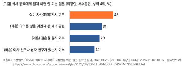 회사 동료에게 절대 하면 안 되는 질문 1위가 ‘집이 자가(自家)야?’!인 것으로 조사됐다.