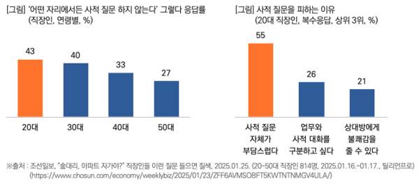 20대 직장인이 사적 질문 피하는 이유, ‘부담스러움’, ‘업무와 사적 대화 구분 필요’ 꼽아!