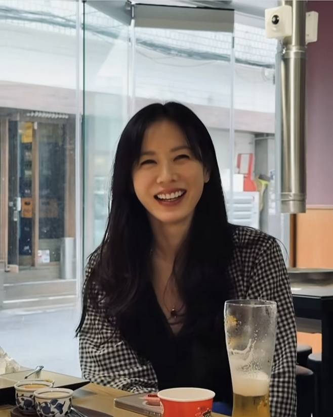 손예진은 블랙 이너와 데님 팬츠 위에 루즈하게 걸친 체크 셔츠 하나만으로 ‘꾸민 듯 안 꾸민 듯’한 분위기를 완성해냈습니다.