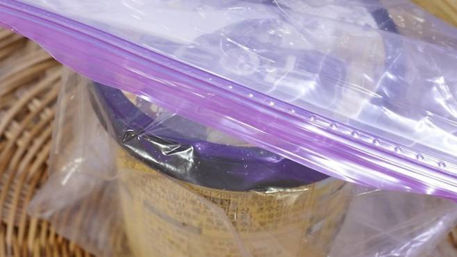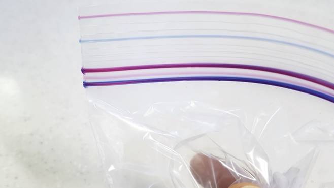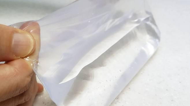 물을 받은 후엔 공기를 최대한 빼서 지퍼백을 꼭 닫아 주세요. 그래야 물이 세지 않고 잘 얼릴 수 있어요.