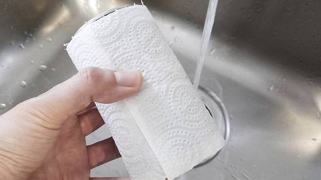 여름철 하면 생각나는 시원한 맥주 또는 음료! 밖에서 바로 사 오면 미지근할 수밖에 없는데요. 그럴 땐 키친타월로 음료를 감싸고 물을 적셔 주세요.