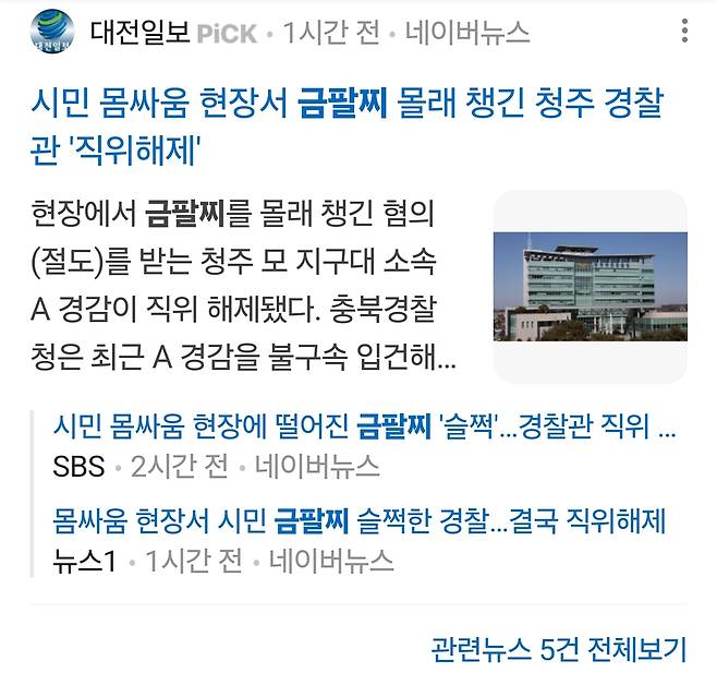 시민들 몸싸움 현장에서 금팔찌를 몰래 챙긴 혐의(절도)를 받는 청주 모 지구대 소속 A 경감이 직위 해제됐다.