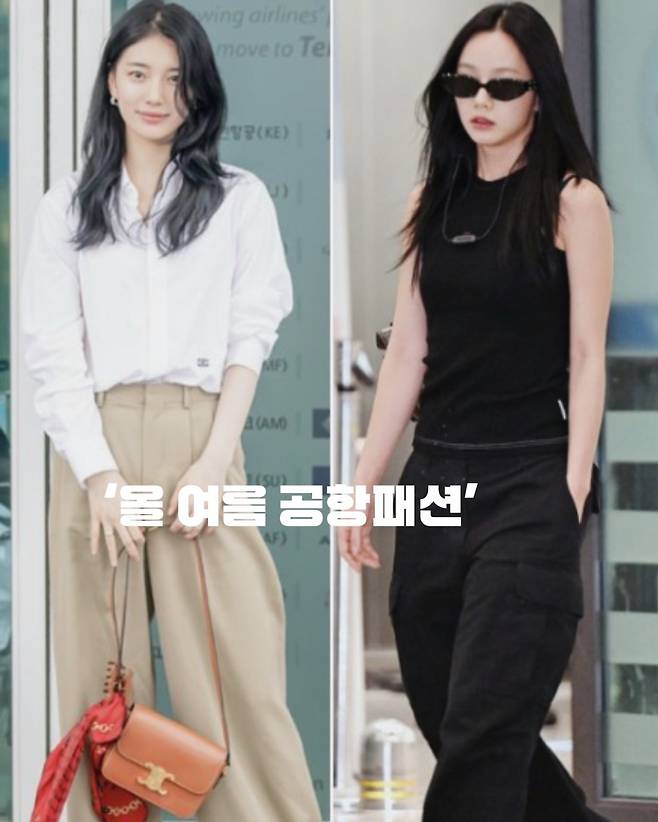 다가오는 휴가, 공항룩 고민된다면 숏츠 대신 수지처럼 린넨 팬츠, 혜리처럼 카고 팬츠 하나로 해결해보세요.