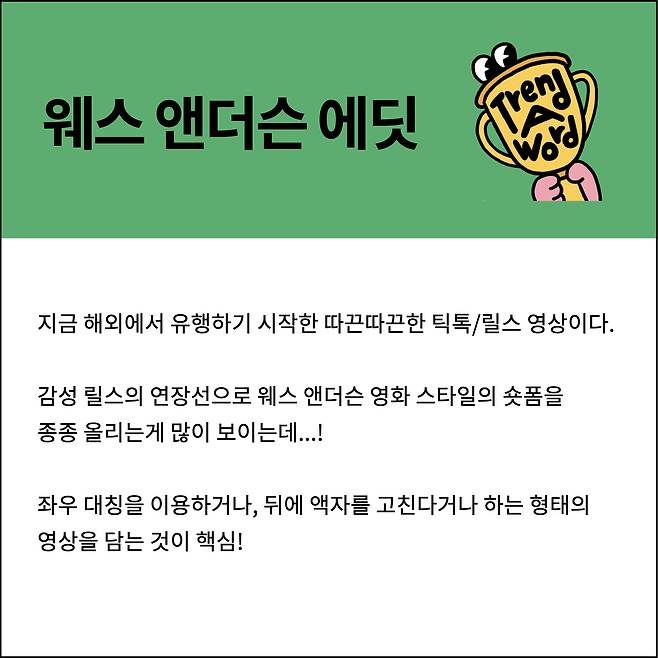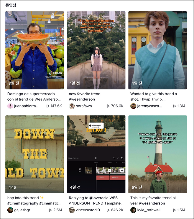 웨스 앤더슨 에딧도 이런 의미에서 해외 틱톡에서 요즘 슬슬 뜨고 있는 것 같은데...