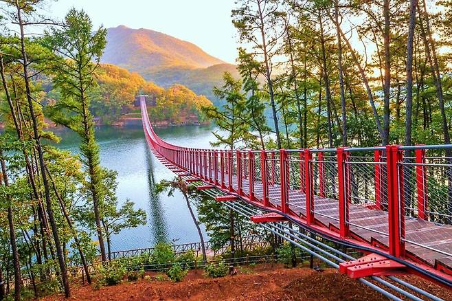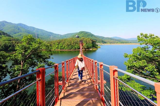 안전이 보장된 마장호수 출렁다리를 건너면 호수 위를 걷는 듯한 짜릿함과 고즈넉한 풍경을 동시에 만끽할 수 있다.
