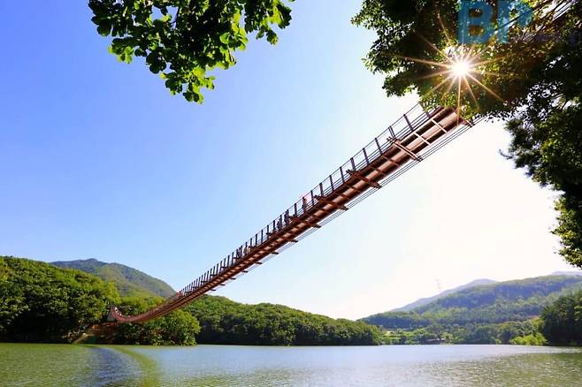 경기 파주시 광탄면 기산로 313에 위치한 ‘마장호수 출렁다리’는 길이 220m, 폭 1.5m로 돌풍과 지진에 견딜 수 있게 설계되었다.