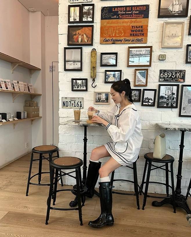 사진 속 류이서는 화이트 미니 원피스를 착용해 마린룩 스타일을 연출했다.