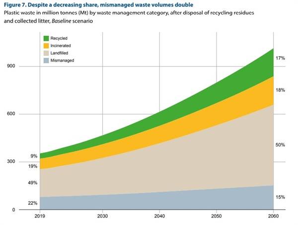 전 세계는 플라스틱 오염 문제 해결을 위해 적극적으로 노력하고 있지만 개선의 효과를 기대하기는 어렵다. OECD '글로벌 플라스틱 전망' 보고서에 따르면 플라스틱 쓰레기를 줄이기 위한 급진적인 조치가 없다면 플라스틱 쓰레기 발생량은 2019년 3억5300만 톤보다 3배 증가해, 2060년 10억1400만 톤이 발생할 것이라고 추정된다.