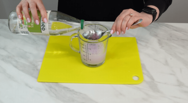 준비물: 대형 비닐봉투, 분무기, 베이킹소다, 식초, 따뜻한 물, 린스, 젖은 행주