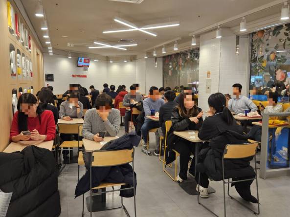 이씨가 식사로 고른 건 롯데리아의 점심 프로모션 ‘리아런치’ 메뉴 중 하나인 5700원짜리 ‘리아치킨버거 세트’다. 롯데리아는 리아런치를 통해 매일 오전 11시부터 오후 2시까지 인기 세트 메뉴 5종을 기존 가격 대비 약 12% 저렴한 가격에 판매하고 있는데, 간단하게 점심을 먹으려는 손님들에게 좋은 반응을 얻고 있다. 특히 회사가 밀집한 오피스 상권인 이곳에선 이 씨처럼 점심 할인 시간 저렴하게 한 끼를 먹으려는 직장인들로 가득 차 있었다. 대부분 인근에서 일하고 있는 직장인들로 이어폰을 착용한 뒤 동영상을 보며 혼자 식사하는 경우가 많았다.