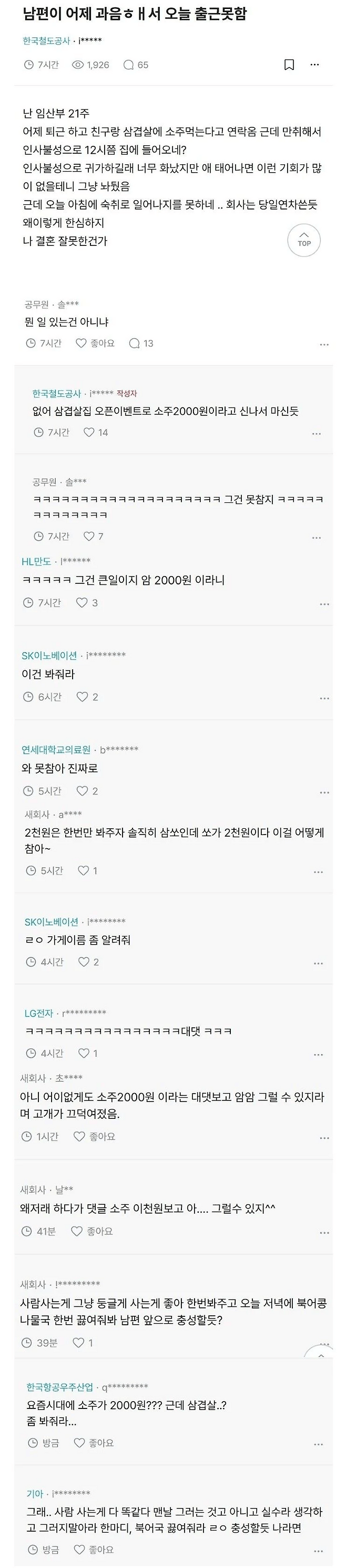 21주 임산부 두고 남편이 과음해서 출근 못 한 이유