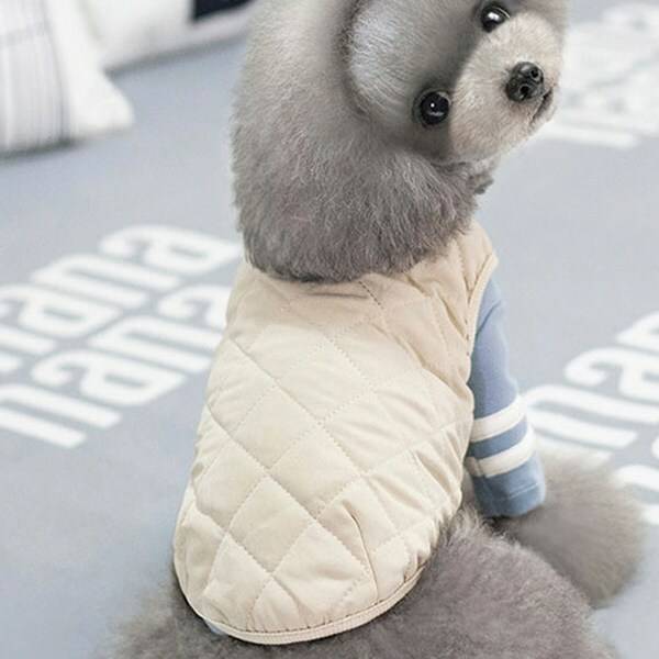 아이보리에 가까운 연한 베이지색 강아지 누빔 조끼예요. 갈색 강아지에게 톤온톤으로 입히기 좋아요. 쌀쌀한 날 입히기 좋아요. 이너티와 함께 입힐 수도 있습니다.