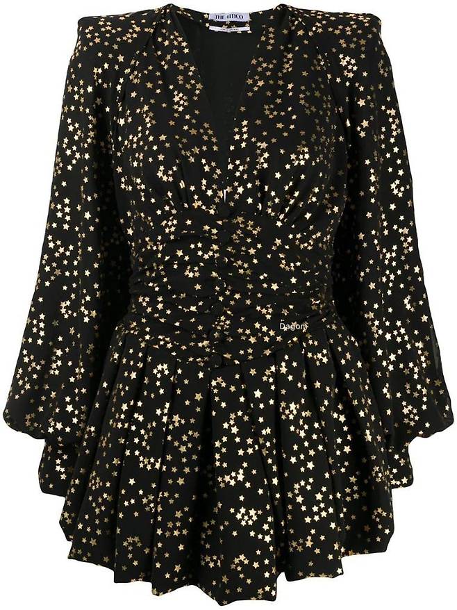 박봄 플리츠 디테일의 별이 박힌 블랙 미니원피스