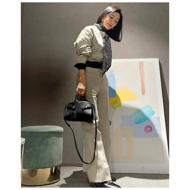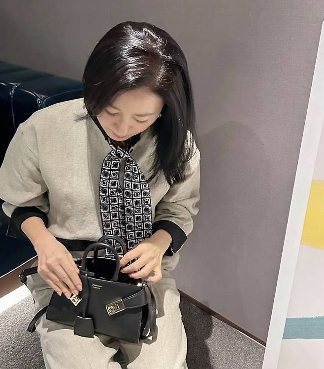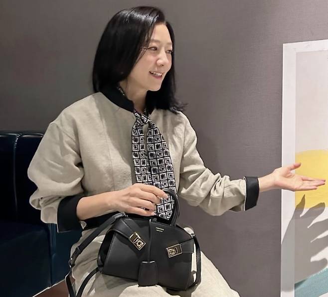 배우 김희애, 깔끔한 니트 패션에 스카프와 가방으로 우아한 느낌..