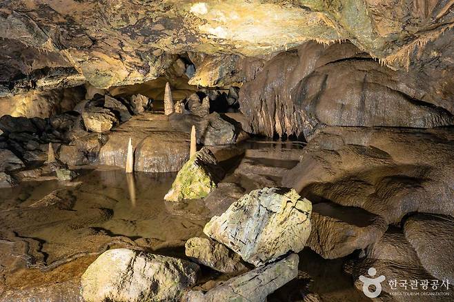 동굴 내부에 들어서면자연 조명이 은은하게 비추는 거대한 석주와 석순, 물이 흐르는 소리까지 어우러져 마치 지하 궁전 같은 웅장함을 느낄 수 있습니다.