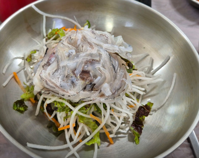 반반 물회: 산오징어와 가자미를 한 그릇에!