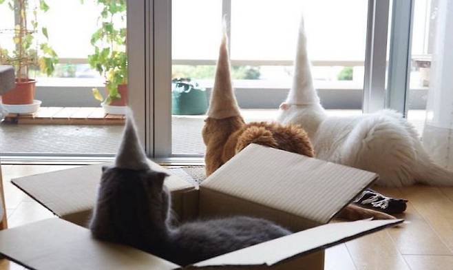 세 마리 고양이가 각기 다른 털색을 가지고 있어, 모자도 다양한 컬러로 완성되었습니다!