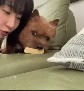 한 견주는 자신의 애완견이 먹이를 잘 지키는지 시험해보고 싶어서, 강아지가 먹고 있는 간식을 먹는 척했습니다.