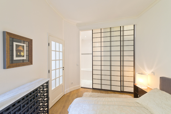또 하나는 가벽과 문을 한 번에 활용하는 방법입니다. 가벽은 열린 형태냐 닫힌 형태냐로 나눌 수 있는데요. 열린 형태는 문을 설치해서 사람이 이동할 수 있도록 하는 경우입니다. 공간 분리가 확실한 열린 형태의 가벽을 원한다면, 폴딩도어, 슬라이딩 도어를 활용해 보세요. 여닫이문보다 더욱 개방감을 줄 수 있답니다.