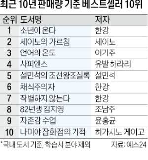 최근 10년간 가장 많이 팔린 책은 '소년이 온다'