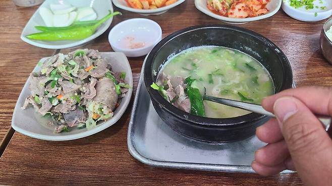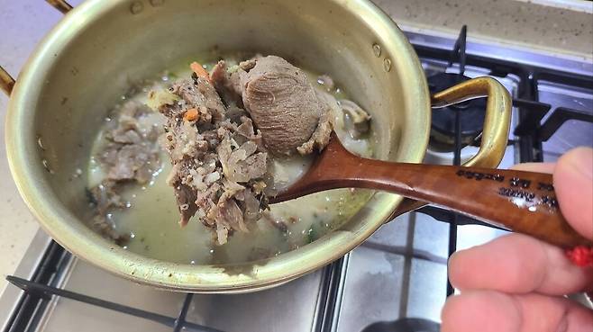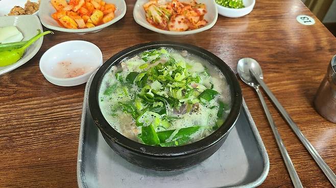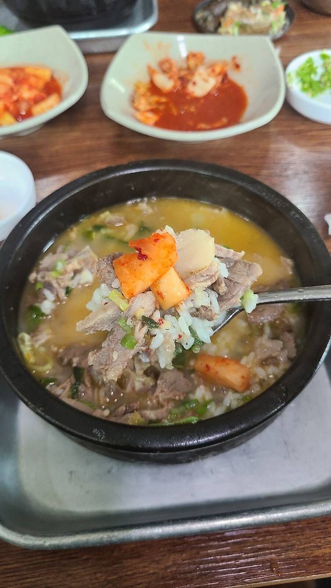 다른집에서는 밥공기뚜껑에 건더기를 덜어먹는데 여긴 뚜껑따위로 감당이안되서 앞접시에다 덜었습니다