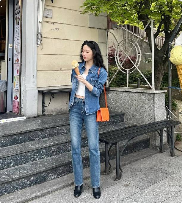 최근 그녀의 SNS에 올라온 사진에서는 청청 패션을 완벽하게 소화한 모습을 볼 수 있습니다. 데님 셔츠와 데님 팬츠를 매치하고, 비비드한 오렌지 컬러의 토트백으로 포인트를 주어 룩을 완성했습니다. 액세서리는 최소화하여 전체적인 룩의 균형을 맞춘 센스가 돋보입니다.
