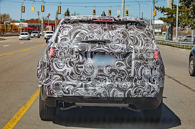 차량 후면부에는 독립 후륜 서스펜션, 사륜구동 시스템, 그리고 운전석 쪽에 위치한 단일 배기 팁이 확인된다. 내부 스파이샷에서는 대시보드에 깔끔하게 통합된 유커넥트 5 터치스크린 인포테인먼트 시스템과 피아노 블랙 마감의 햅틱 공조 버튼이 보인다.
