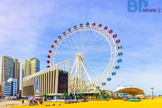 도심 속 해수욕장의 풍경을 배경으로, 유원지의 분위기를 자아내는 알록달록한 대관람차의 모습은 어른 아이할 것 없이 방문객의 마음을 들뜨게 만든다.