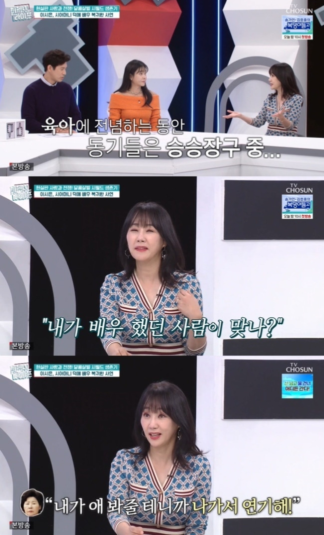 방송된 TV조선 ‘퍼펙트 라이프’에서 배우 이시은은 출산 및 육아로 경력 단절이 됐을 때 힘들었던 순간을 떠올렸습니다. 스튜디오에서 이시은은 시어머니에게 고마움을 느낀 순간을 떠올렸습니다.