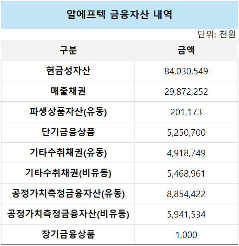 풍부한 현금도 기대되는 부분이다. 알에프텍은 외형 확장을 위한 잇단 M&A에도 불구하고 현금 보유량을 충분히 늘렸다. 지난해 말 연결기준으로 축적된 현금성자산은 840억원으로 2019년 말 대비 15.5% 늘어났다.