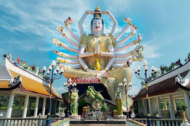 특히 자비와 연민의 여신으로 알려진 18m 높이의 ‘관음보살상’은 18개의 팔을 지닌 채 위엄을 뽐내고 있는데요. 그 모습이 상당히 휘황찬란 하여 종교적인 이유가 아니더라도 충분히 방문할 가치가 있는 코사무이 가볼 만한 곳입니다.