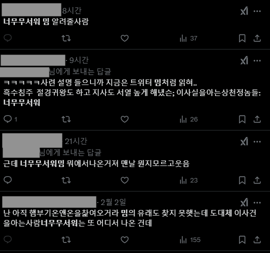 그렇게 ‘너무 무서워’ 밈은 뼈대만 남아