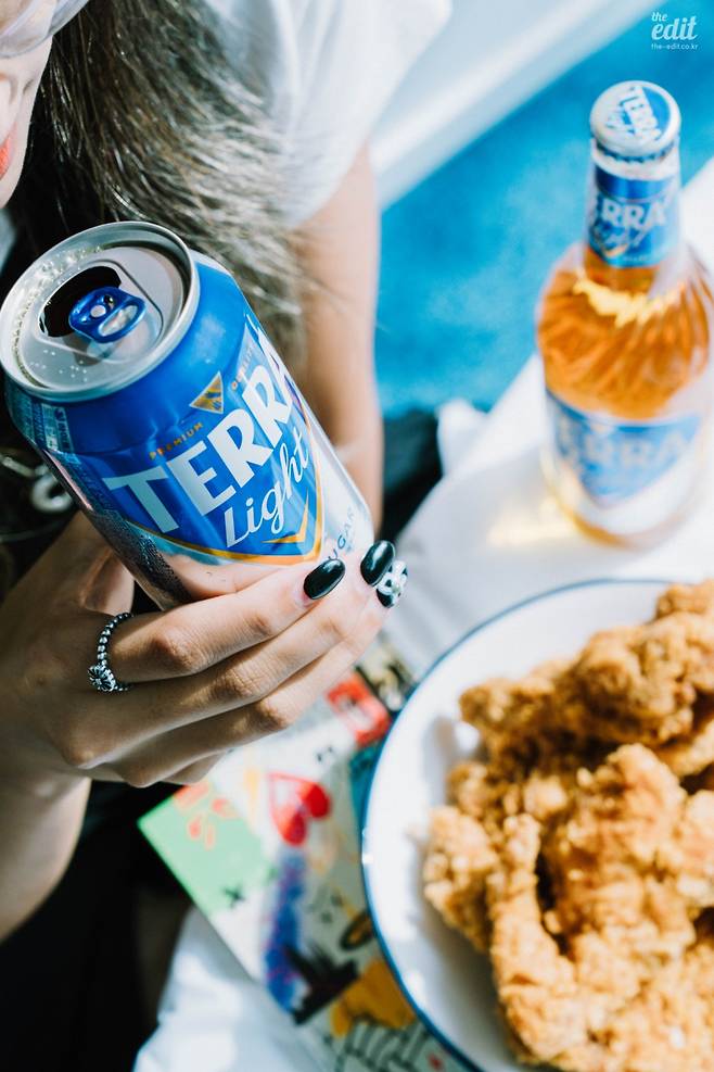 K-술 문화의 3대 요소는 술, 안주, 사람이며, 세 가지를 하나로 묶어주는 게 ‘퍼포먼스’라고 생각한다. 함께 게임을 하거나, 파도를 타거나, 매번 새로운 방식으로 인증샷을 찍거나. 테라 라이트를 리뷰하기 위해 맥주를 계속 마시다 보니 함께 술 마실 친구들을 부르고 싶었다. 지금이라도 이번 주말에는 우리 집에서 테라 라이트 한 캔 마시자고 연락을 해야겠다.