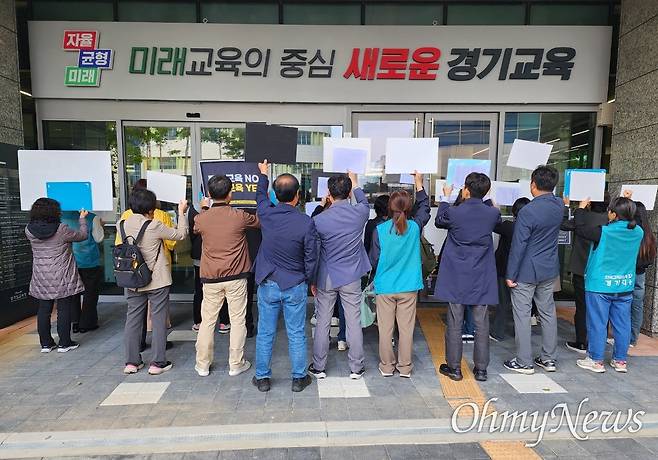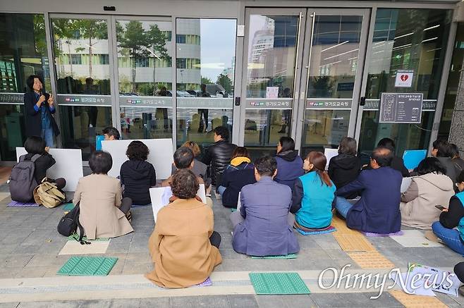 | ▲ 특권교육저지경기공동대책위원회, 교육청 앞 항의 행동. |