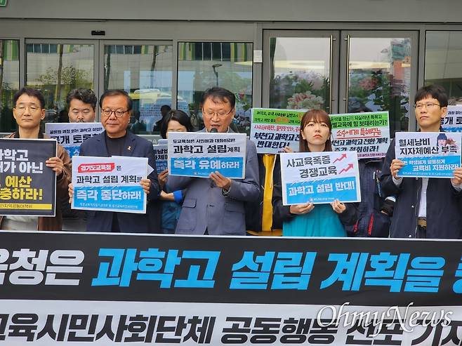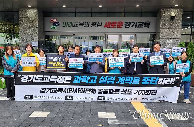 공대위는 28일 경기도교육청 앞에서 기자회견을 열어 과학고 설립계획 즉각 중단을 촉구했다.