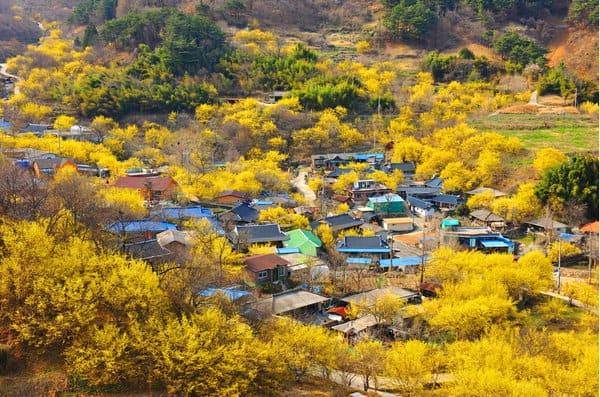 3월 중순부터 4월 초까지 산수유꽃이 만개하는 시기에 방문하면, 마을 전체가 노란빛으로 물드는 모습을 볼 수 있습니다. 특히 마을 뒤편의 산책로를 따라 걸으며 감상하는 산수유꽃 풍경은 그야말로 절경이에요.