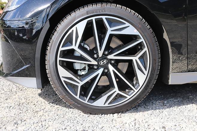 과한 조향이 들어간 상황에서는 약하게 오버스티어 현상이 발생한다. 연속된 코너에서 좌우 혹은 앞뒤 무게 이동은 차체와 배터리를 공유하는 아이오닉5보다 더 자연스럽고 빠르다. 세단의 강점이 드러난다. 20인치 휠 순정 타이어는 피렐리 피제로(P ZERO) TM 사계절용이다.