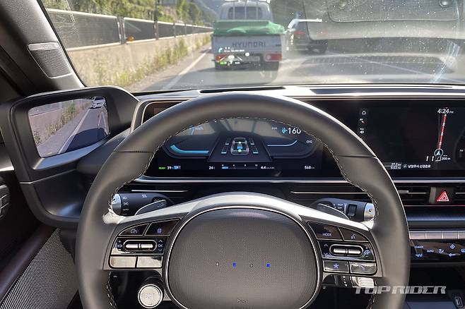 복합전비는 4.8km/kWh(도심 5.2, 고속 4.4)다. 모든 수치에서 현대차 아이오닉5, 기아 EV6를 앞선다. 아이오닉6의 전비는 실제 주행에서 더 높다. 시승은 에어컨 온도 18도, 송풍 1단계, 통풍 시트 1단계, 스마트폰 무선 충전, 헤드램프 및 리어램프를 켠 상태로 진행했다.