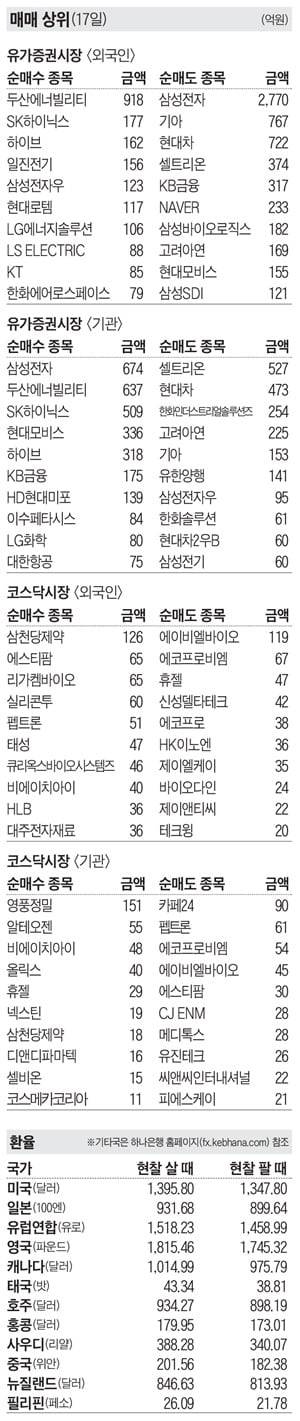 [주식 매매 상위 종목 및 환율] 2024년 10월 17일자