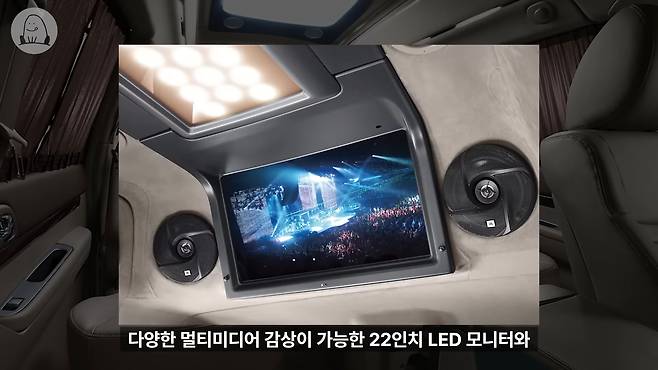 스마트폰 미러링 등 다양한 멀티미디어 감상이 가능한 22인치 LED 모니터와 고출력 JBL 사운드 시스템, 대형 룸 램프, 화장품이나 음료를 차게 보관할 수 있는 냉장고 같은 편의장비를 갖추고 측면 커튼, 스웨이드 내장재 등 고급 소재를 둘러 호화롭게 구성했습니다.
