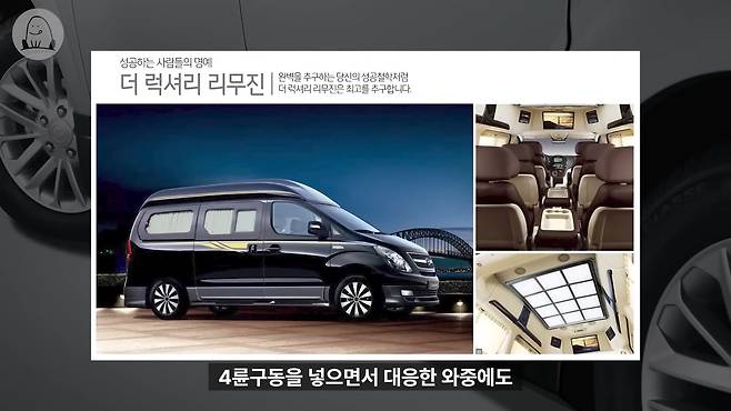 현대차가 스타렉스 리무진에 4륜구동을 넣으면서 대응한 와중에도 나름 의미 있는 판매량을 달성했습니다. 나중에는 올 뉴 카니발을 참고해 일체형 루프박스를 탑재해 공간 활용성을 높이고 리무진 모델과 비슷한 분위기를 풍기는 '아웃도어' 모델을 추가하기도 했죠.