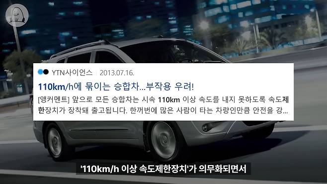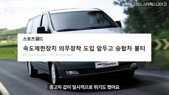 속도 제한 장치가 장착되기 이전에 출고를 서두르는 판에 얼떨결에 반사 이익을 보기도 했고, 법 개정 이전에 출고된 차들과 속도 제한 장치가 장착되지 않은 차량의 중고차 값이 일시적으로 뛰기도 했어요.