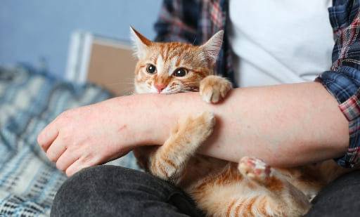 애정표현으로 무는 경우와는 확연히 다릅니다. 강도가 세고, 고양이의 표정도 좋지 않기 때문에 그만하라는 거부의 표현입니다. 이 때는 세게 물릴 수도 있어 주의가 필요해요.