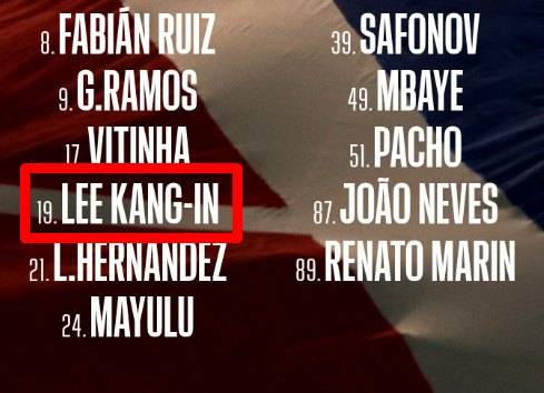 매체가 예상한 라인업에서 뤼카 슈발리에가 골키퍼 장갑을 끼고, 아슈라프 하키미, 마르퀴뇨스, 윌리안 파초, 누누 멘데스가 백4를 형성한다. 중원엔 파비안 루이스, 주앙 네베스, 비티냐가 배치되고, 최전방 스리톱 라인에 이강인, 곤살루 하무스, 브래들리 바르콜라가 이름을 올렸다.