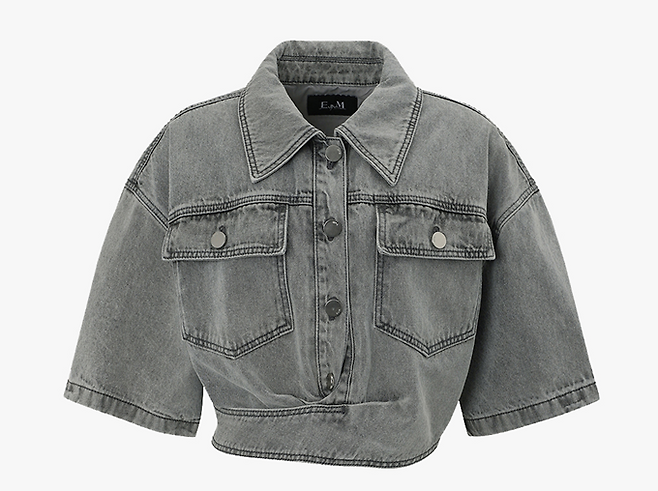 '이비엠' 반팔 데님 재킷은 얇은 데님 소재로 가벼운 착용감과 청량한 촉감을 부여하며 드랍 숄더의 슬림핏, 안단작의 버튼 여밈과 밑단의 버클 여밈으로 힙한 실루엣을 연출한다.